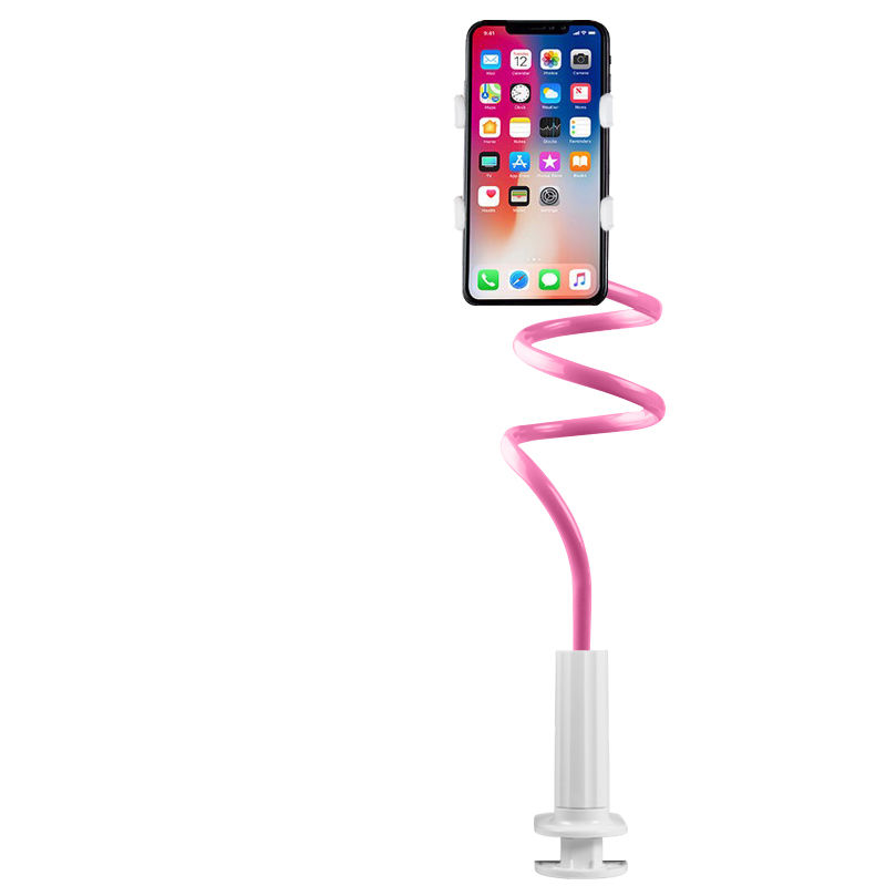 【Easy to Install】Featuring the adjustable clamp base varying from 0 to 3.15 inches (8cm), the cell phone clip holder can be securely mounted on the bed frame, bedside, headboard, nightstand, desk, end table and kitchen counter etc. A non-slip silicone base won't scratch the surface of your furniture.