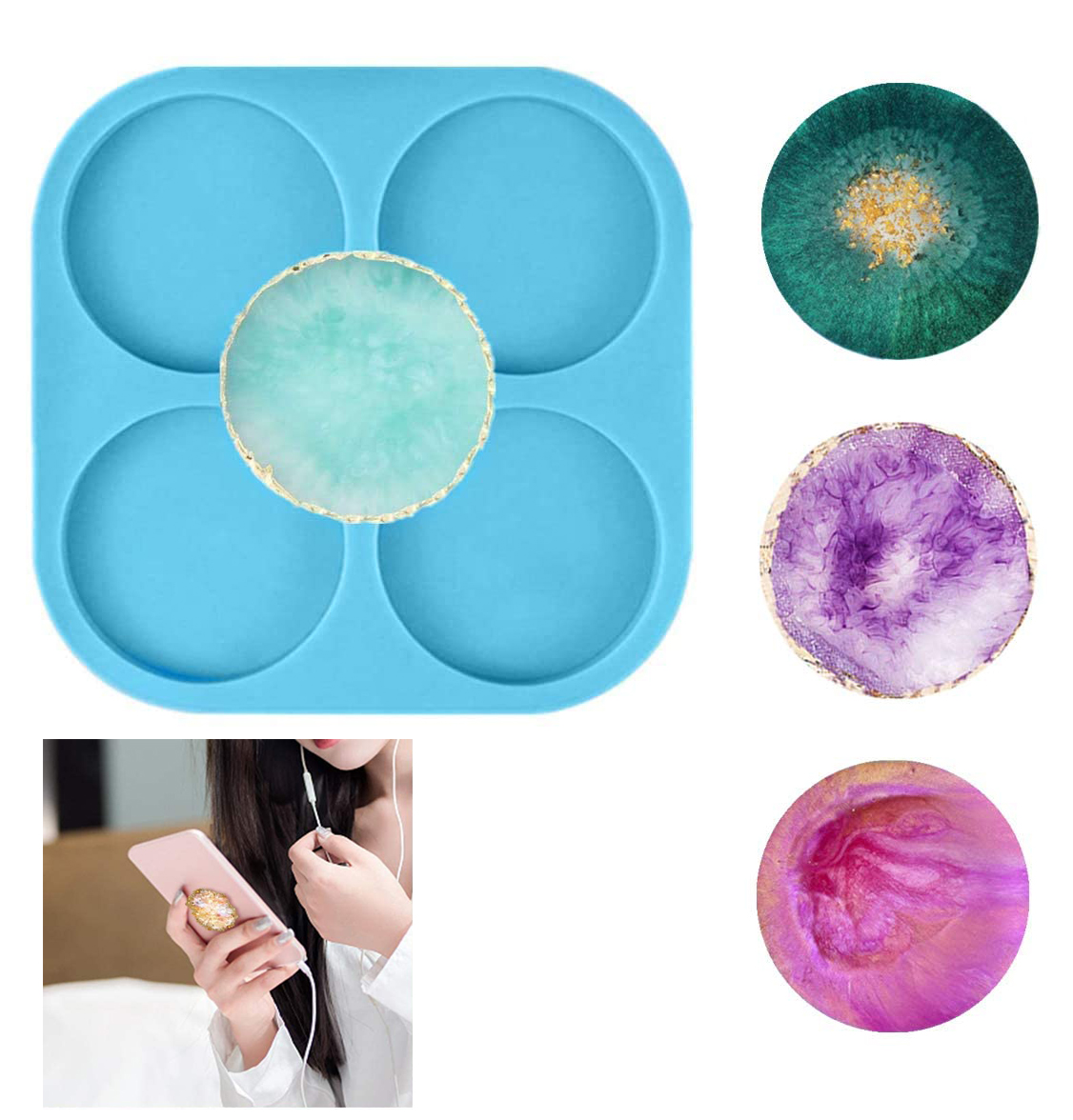 [Package included] the package comes with 1 piece of phone grip resin moulds, each includes 4 circles, 4 circles in total, and 8 pieces of plastic round cellphone sockets, the proper combination and sufficient quantity for you to meet your daily use