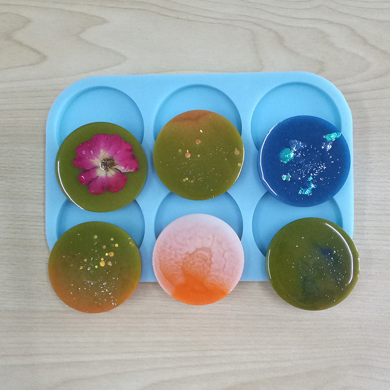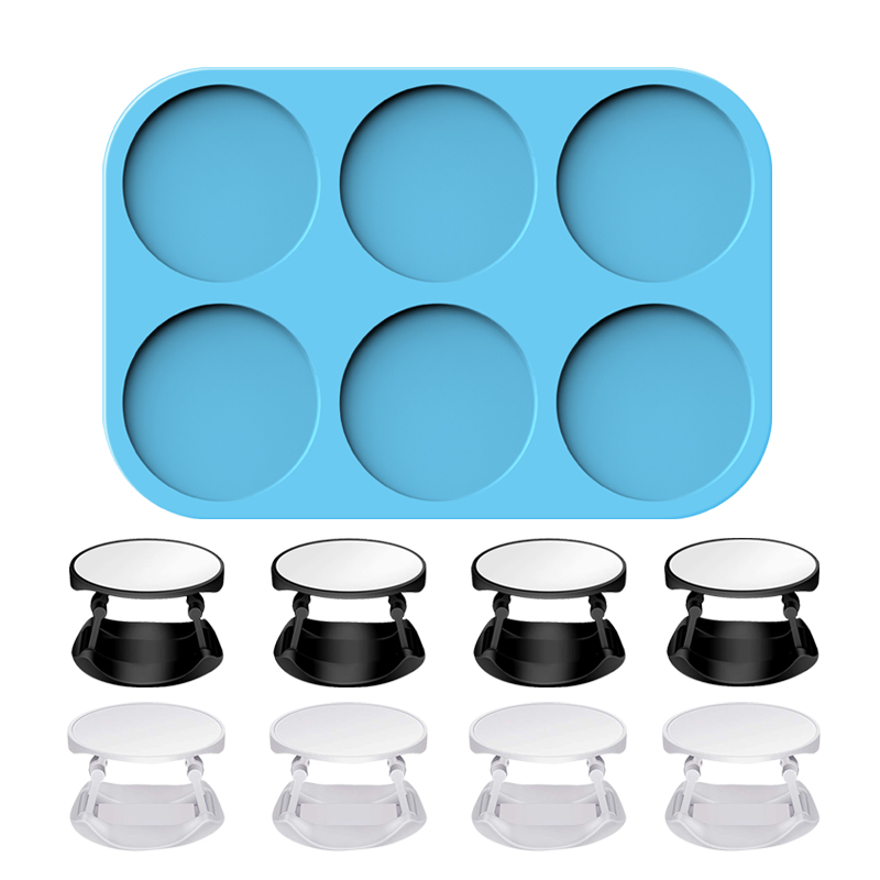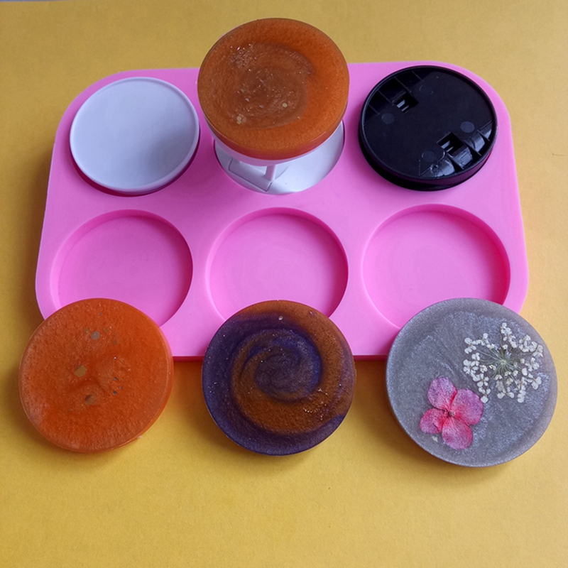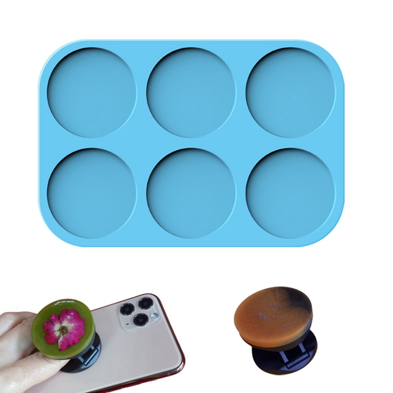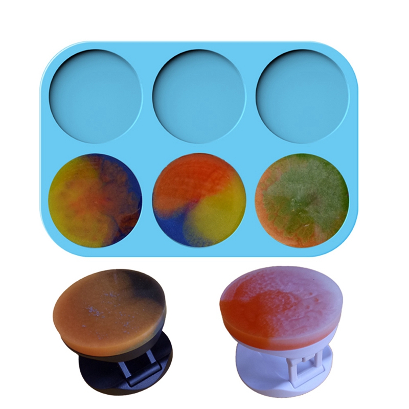 [Size information] the size of 6-cavity round phone grip silicone mould is approx. 5.51 x 3.74 x 0.28 inches/ 14 x 9.5 x 0.7 cm, and the diameter of each round cavity is approx. 1.6 inches/ 4 cm, and the diameter of plastic cellphone socket is also approx. 1.6 inches/ 4 cm