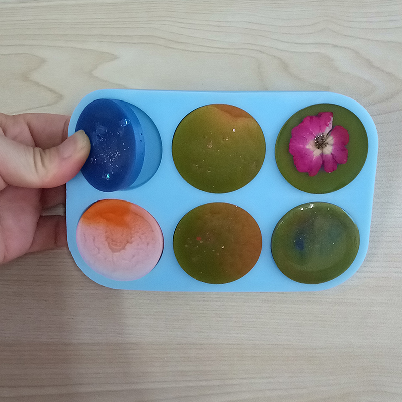 [Ease of use] Choose your favorite silicone mold style, put the filler into the round mold; pour the resin into the mold, or add glitter, sequins, resin dyes or other decorations; wait for the resin to cure, then Twist the mold and push out the finished shape; finally, your process is complete.