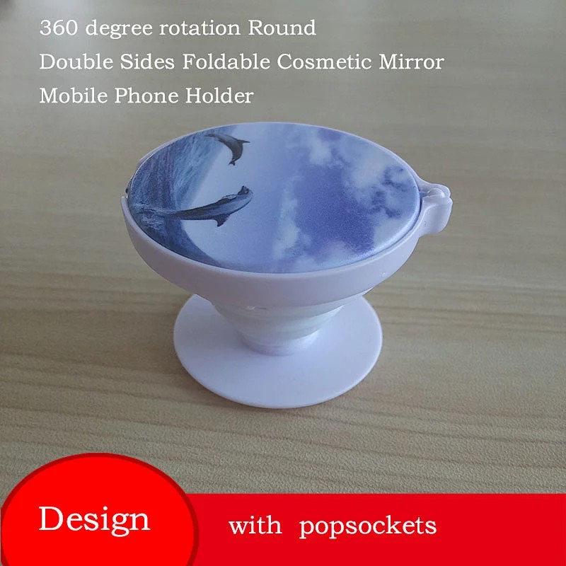 3. 360 degree rotation Round Double Sides Foldable Cosmetic Mirror with popsockets