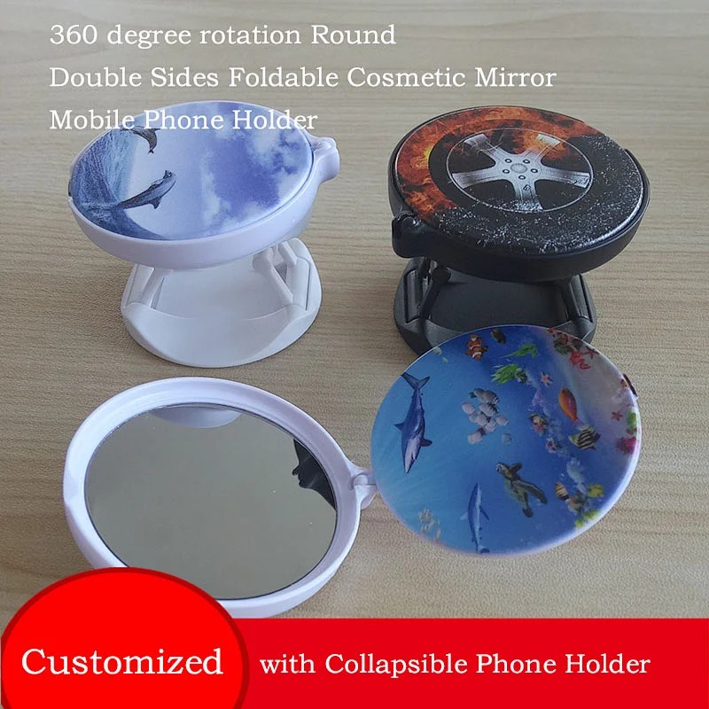 1. 360 degree rotation Round Double Sides Foldable Cosmetic Mirror Mobile Phone Holder